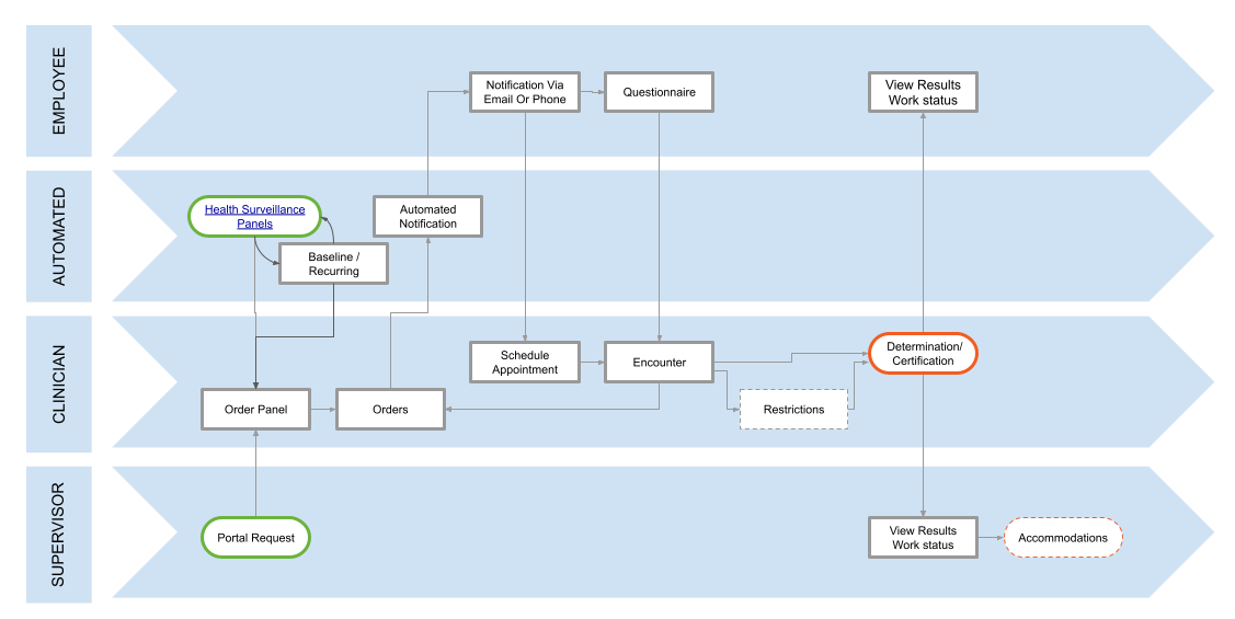 According to the U.S. Department of Health and Human Services, Medical Surveillance is “the systematic assessment of employees exposed or potentially exposed to occupational hazards.” Through the use of regular, ongoing screenings and examinations, reducing and preventing occupational injury and illness is streamlined, allowing for more effective exposure prevention strategies and better recordkeeping. The Enterprise Health  system is designed with an emphasis on these exact components, providing easy-to-use, non-invasive processes when addressing medical clearance needs.