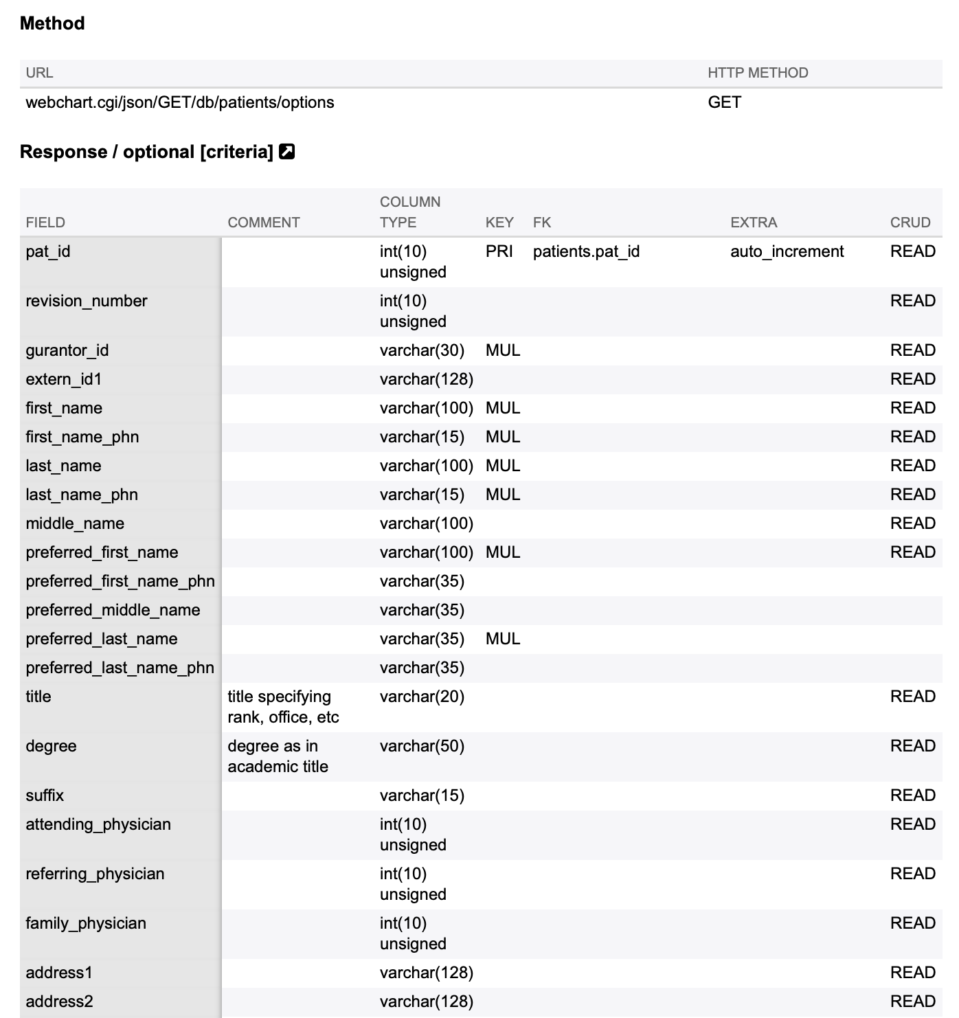 | Date of Birth | ?f=layout&module=StructDocAPI&name=Birth%20Date&XML&pat_id=XX |